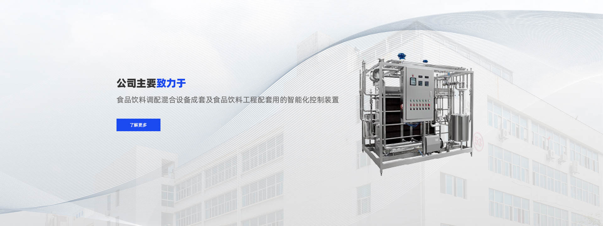 公司主要致力于食品飲料調配混合設備成套及食品飲料工程配套用的智能化控制裝置。主導產品為板式換熱器設備,板式成套殺菌機組、閃蒸脫氣裝置、流體輸送設備、分離攪拌設備及CIP自動清洗裝置等。 經過公司全體員工的共同努力,產品已遠銷俄羅斯、哈薩克斯坦、烏茲別克斯坦,土庫曼斯坦,朝鮮、印尼、沙特阿拉伯、巴基斯坦,馬來西亞,越南,柬埔寨,菲律賓,泰國、尼日利亞,加納,阿爾及利亞,埃塞俄比亞,坦桑尼亞,埃及,薩摩亞,等國家和地區。